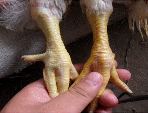 雞爪發(fā)白(右側(cè)為對(duì)照)
