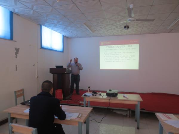 公司王總、范經(jīng)理給市場人員講解公司的研發(fā)動態(tài)以及新產(chǎn)品的介紹說明