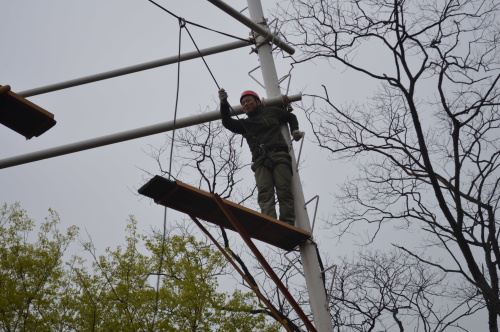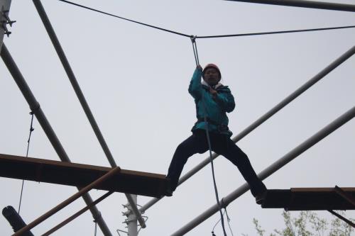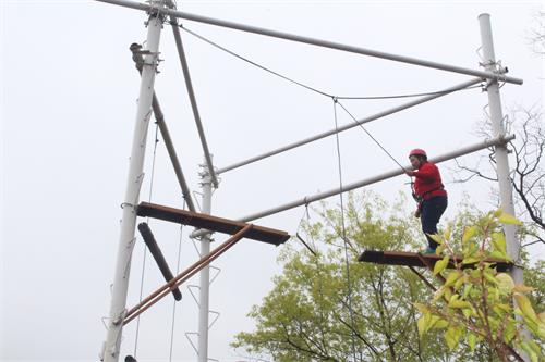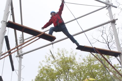 在“高空跨越”項(xiàng)目中,多數(shù)人心存膽怯,特別是女員工,更是神情緊張,但在教練的指導(dǎo)和大家的互動(dòng)鼓勵(lì)下,氣氛逐漸舒緩?罩幸恍〔,人生一大步”“高空跨越”讓大家突破自我,克服了心理恐懼,在團(tuán)隊(duì)的加油鼓勵(lì)下,每個(gè)人都順利通過。