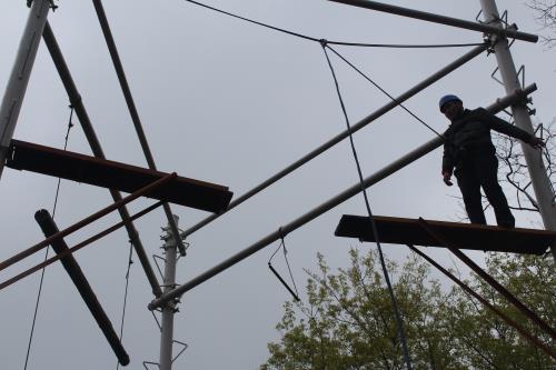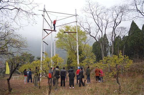 活動(dòng)伊始,在張教練、王教練的指導(dǎo)下大家進(jìn)行了破冰熱身、團(tuán)隊(duì)組建和團(tuán)隊(duì)展示。隨后,正式開始今天的拓展訓(xùn)練。拓展項(xiàng)目有“高空跨越”、“信任背摔”和“挑戰(zhàn)150”等。