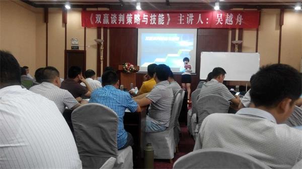 6月26日--27日公司技術(shù)部范經(jīng)理、銷售部劉經(jīng)理、裴經(jīng)理參加由華夏基石公司舉辦的《雙贏談判策略與技能》本次學(xué)習(xí)邀請了國內(nèi)著名大客戶營銷專家吳越舟老師分享《雙贏談判策略與技能》的精彩課程。本次課程,講到使用商務(wù)談判的策略,能夠知彼知己,掌控全局,在博弈中迂回向前,真正提升談判能力,成為企業(yè)業(yè)務(wù)精英。