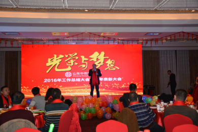 山東中農(nóng)普寧2016年度工作表彰大會暨迎春聯(lián)歡晚會于1月8日在泰安藍海御華大飯店隆重舉行現(xiàn)場氣氛歡樂祥和。