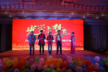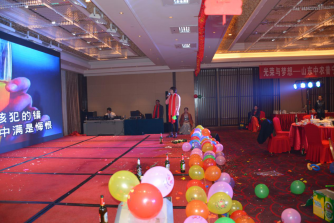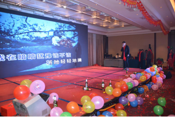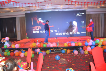 臺下一桌桌豐盛的晚餐、彼此舉杯同賀、相互祝愿。公司領(lǐng)導(dǎo)與員工親情互動、激動人心的砸金蛋活動、搶錢大賽、吹瓶比賽......