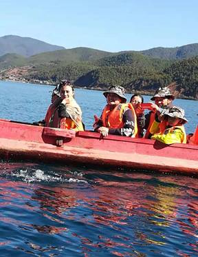 旅游第一站乘車前往“最后的女兒國”【瀘沽湖】,抵達后,乘豬槽船前往【里務比島】, SPAN>,里務比島位于瀘沽湖的中南部,與吐布半島將瀘沽湖一分為二,西北與蛇島相望。從落水村到該島大約半小時。島嶼的一側為石筍,成為天然的碼頭,一條蜿蜒的小道直接通往島嶼的頂部,道路旁邊有許多杜鵑花以及野櫻桃樹;▍驳谋M頭為藏傳佛教寺院里務比寺,島頂有一白塔。里務比島與謝瓦俄島,里格島并稱為瀘沽湖蓬萊三島。欣賞里務比島的無限美景。
