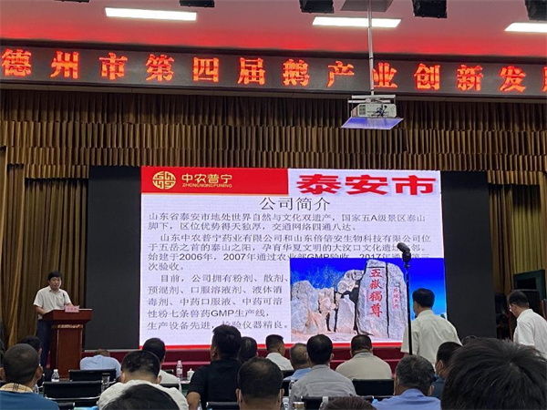 本次大會以“科技賦能、降本增效、創(chuàng)新模式、合作共贏”為主題,互動交流產(chǎn)業(yè)熱點難點問題,分享新理念、新創(chuàng)意、新模式,與會的專家學者、養(yǎng)殖企業(yè)代表和相關產(chǎn)業(yè)鏈代表,對鵝業(yè)發(fā)展趨勢,鵝的飼養(yǎng)管理及防控要點,鵝的常見病預防治療及相關政策進行了深入的探討交流。我公司技術(shù)總監(jiān)王金紀也在會上做了報告,向參會人員介紹了中農(nóng)普寧在鵝的疾病預防和治療中的成功經(jīng)驗,并展示了公司在治療鵝痛風方面的最新產(chǎn)品—痛風消,以其良好的治療效果受到了參會人員的廣泛關注。