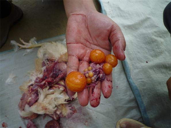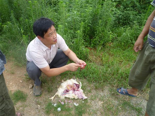 7月19日,公司王總在湖北省蘄春縣一家蛋雞場(chǎng)做技術(shù)指導(dǎo)。(解剖案例疾病圖譜)